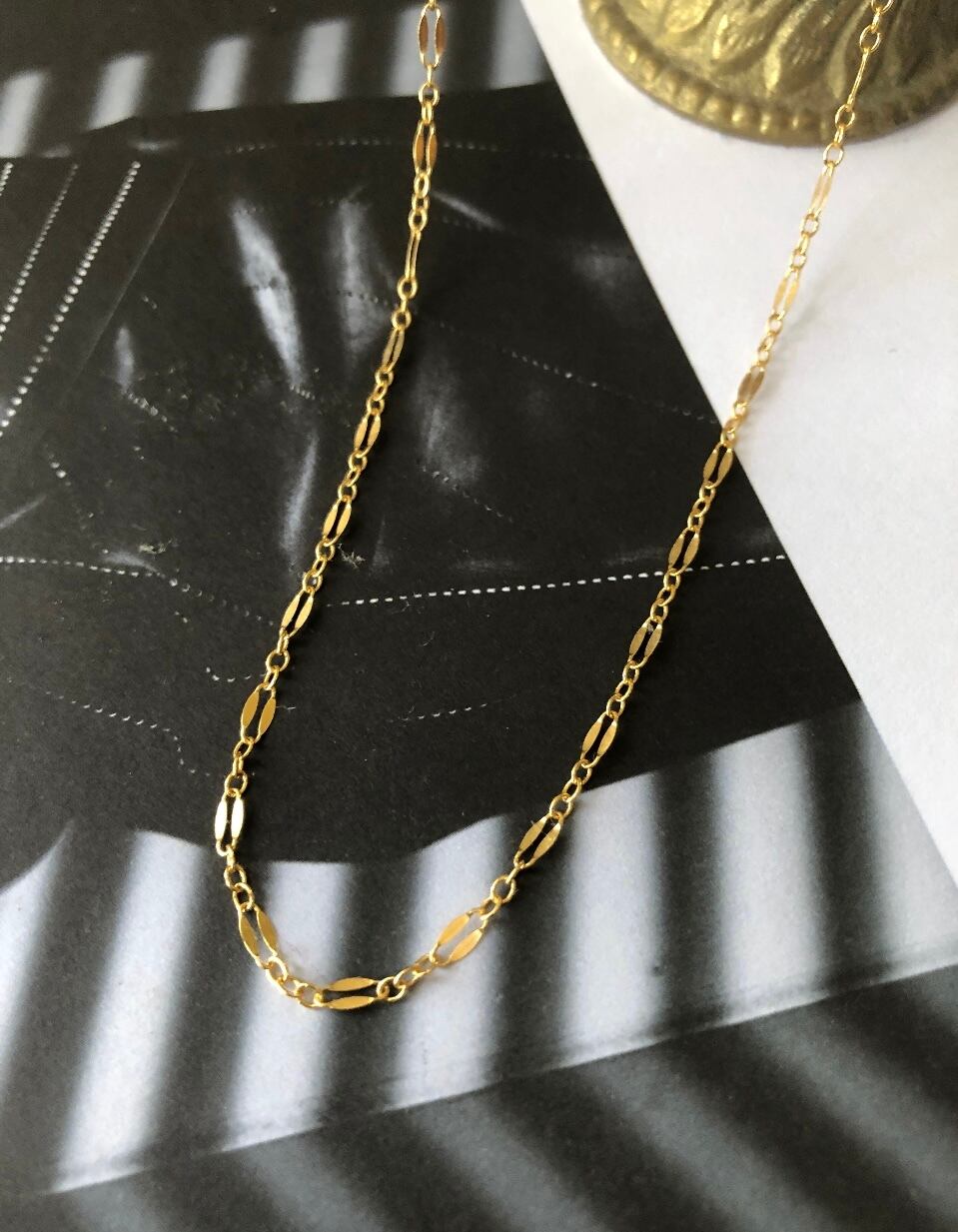 シンプルな14kgfの細めのデザインチェーンネックレス。