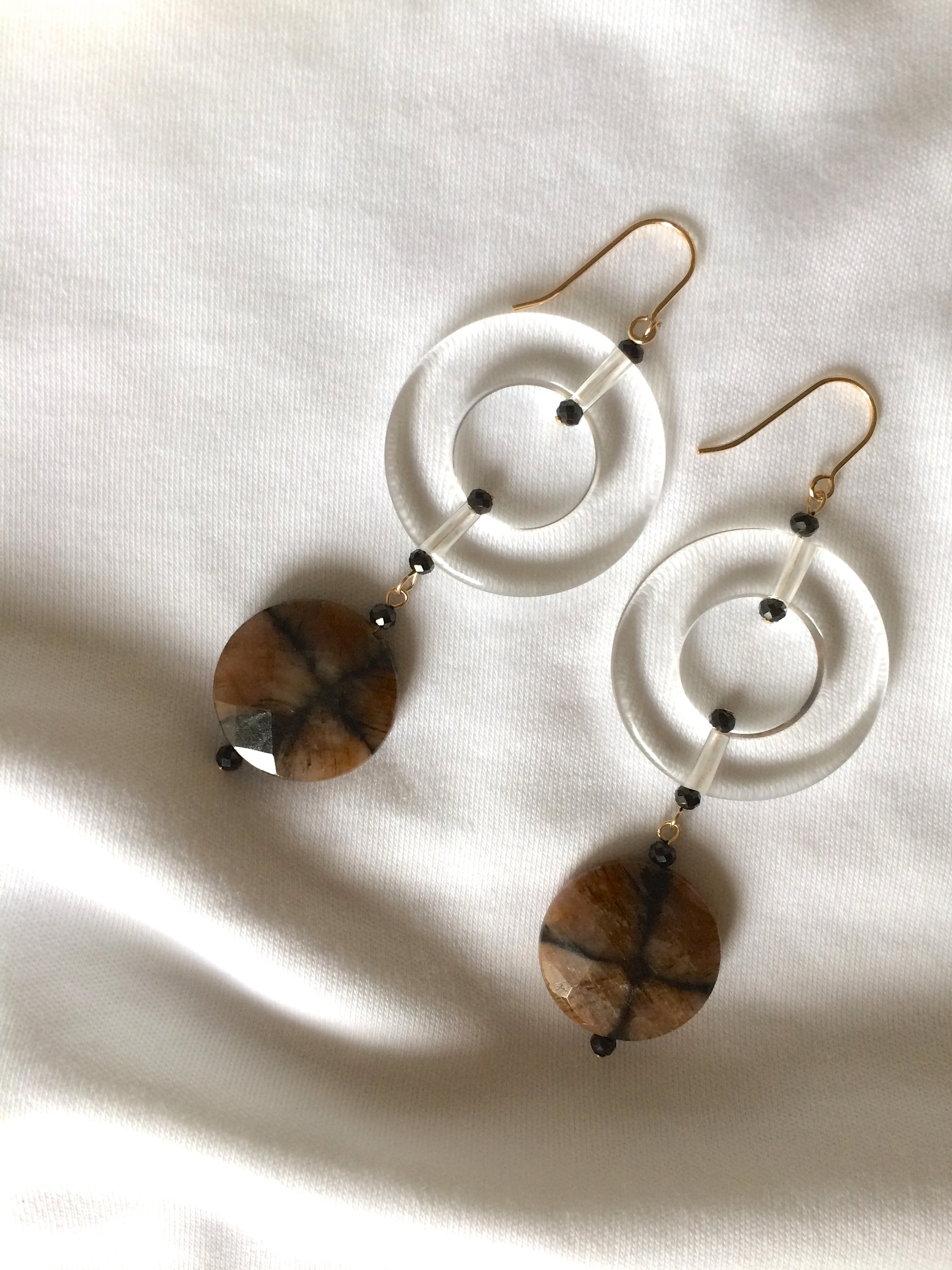 夏らしい透明感のアクリルクリスタルパーツに、希少なキャストライトの組み合わせピアス。