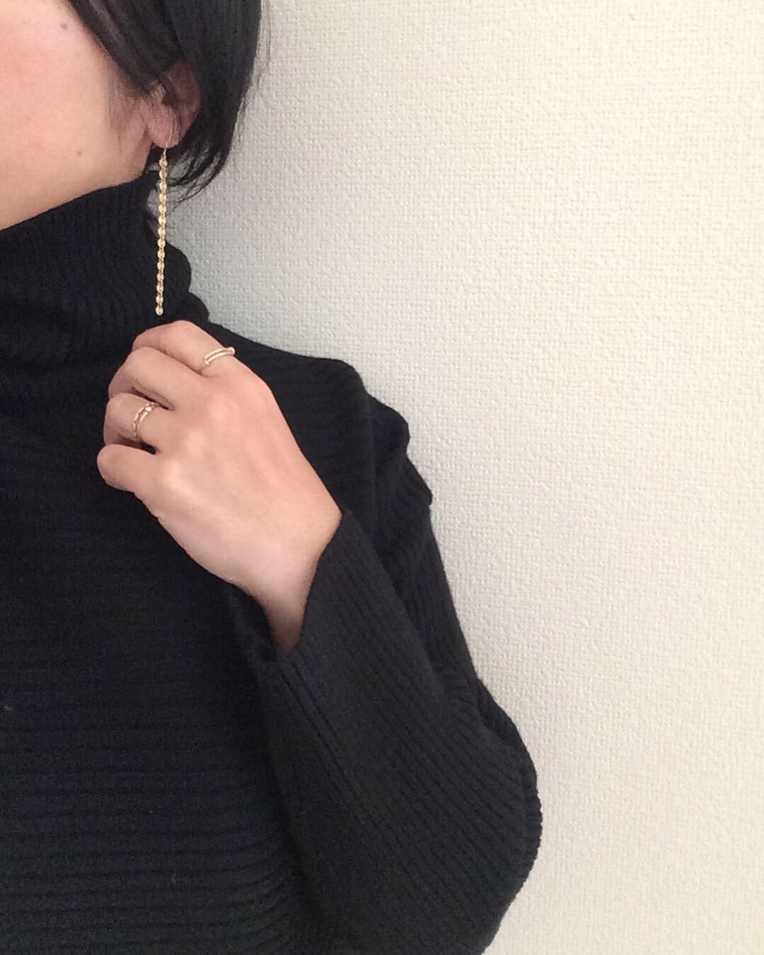 一本のすっとしたチェーンのみのシンプルなピアスですが、