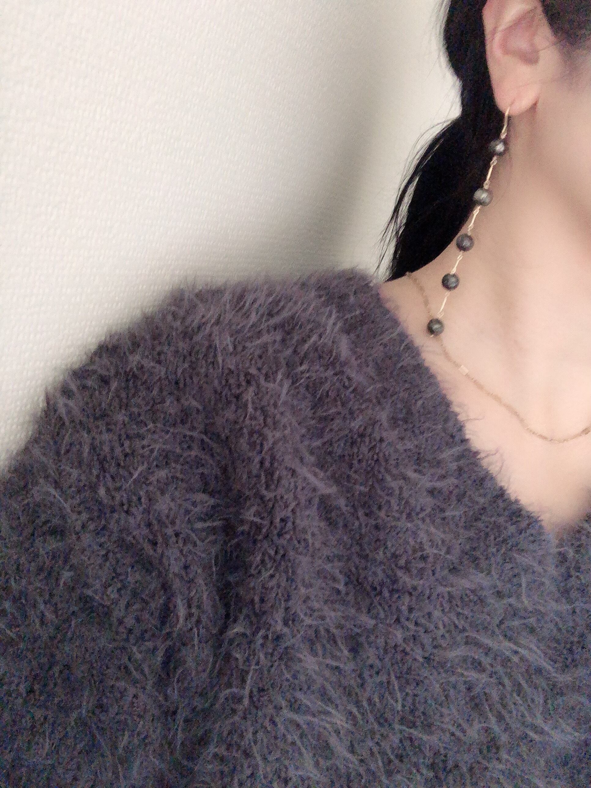 間にストレートのチェーンを入れ、クールで女性らしいロングピアスに。