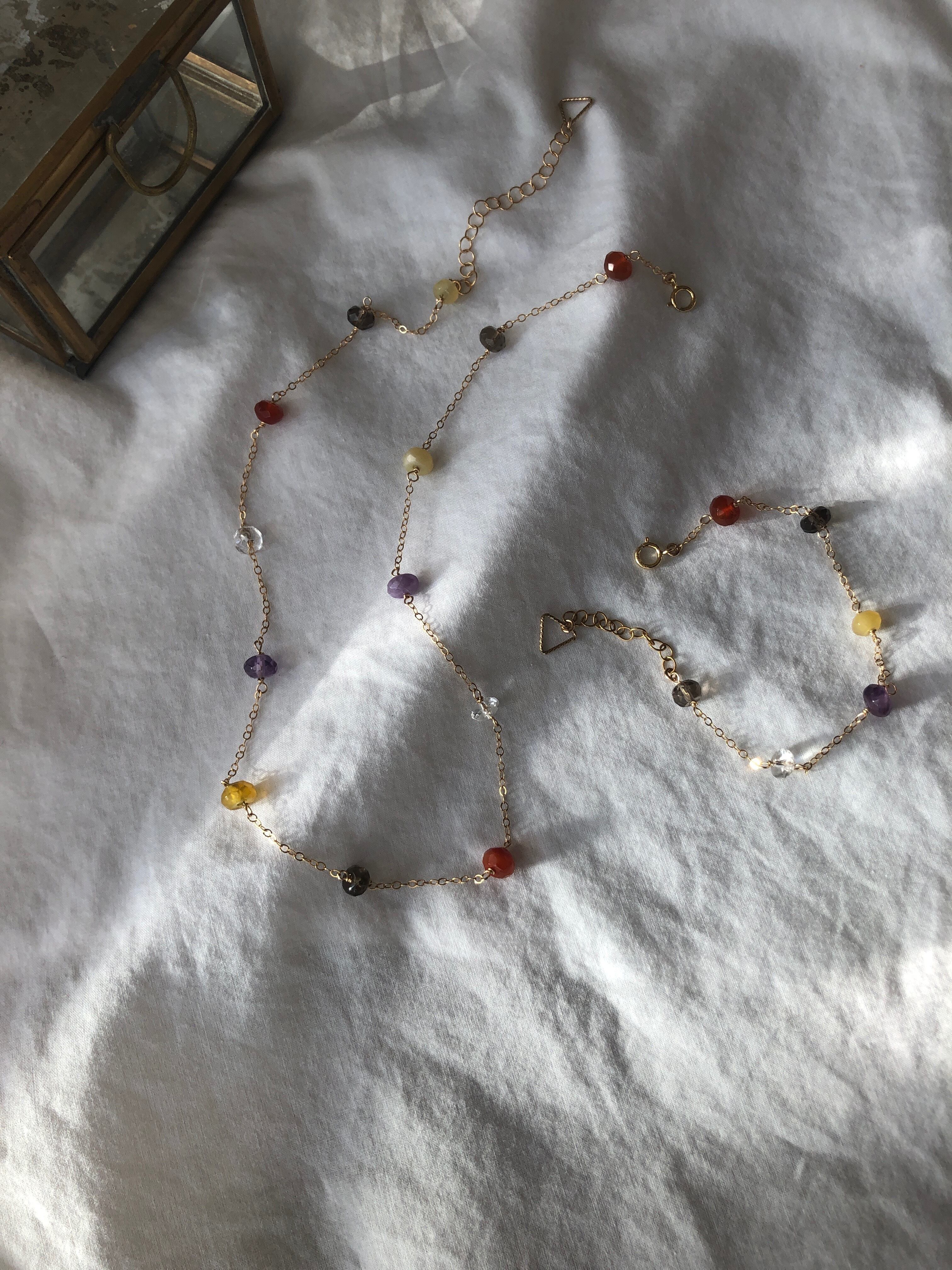 いろいろなカラフルな天然石集めたCUTE-POPなネックレス。